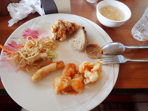 メニューとしては、チキン、パンシットカントン、ルンピアなどフィリピン料理が中心に並べられており、デザートはフルーツに加えて、プトと呼ばれる、これまたフィリピンの代表的なデザートも一緒に出されていました。
