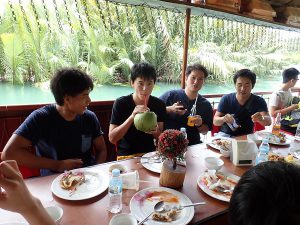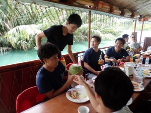 船の上では有料でジュースやスムージーも販売していて、大きなココナッツジュースを買って飲んでいる生徒さんもいらっしゃいました。