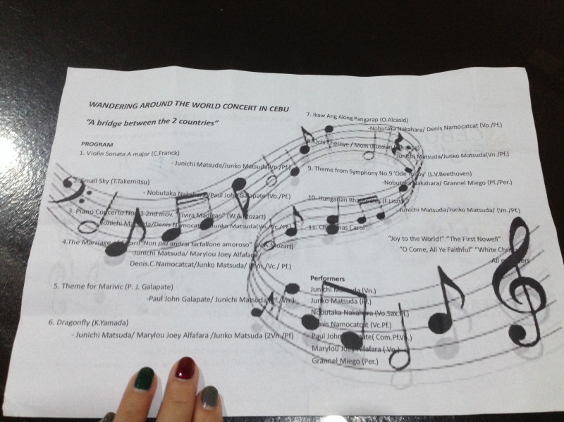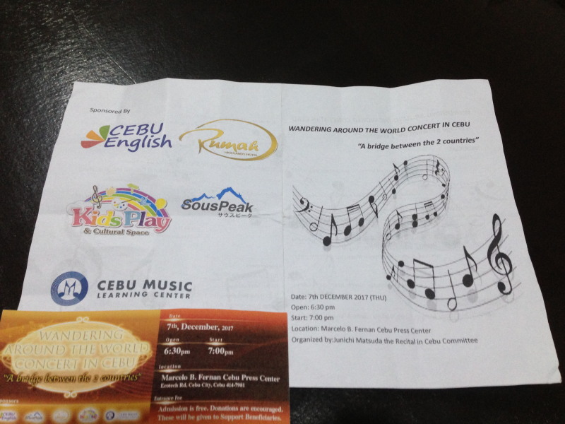 今回、わたしたちは「Wandering Around The World Concert in Cebu “A bridge between the 2 countries”」というコンサートに行ってまいりました。