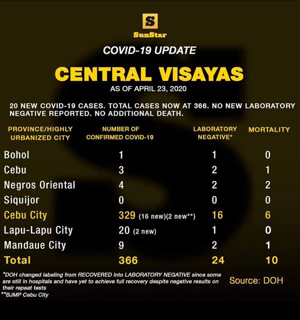 4月23日(木)時点でのセブ島及び周辺諸島の感染者数です。