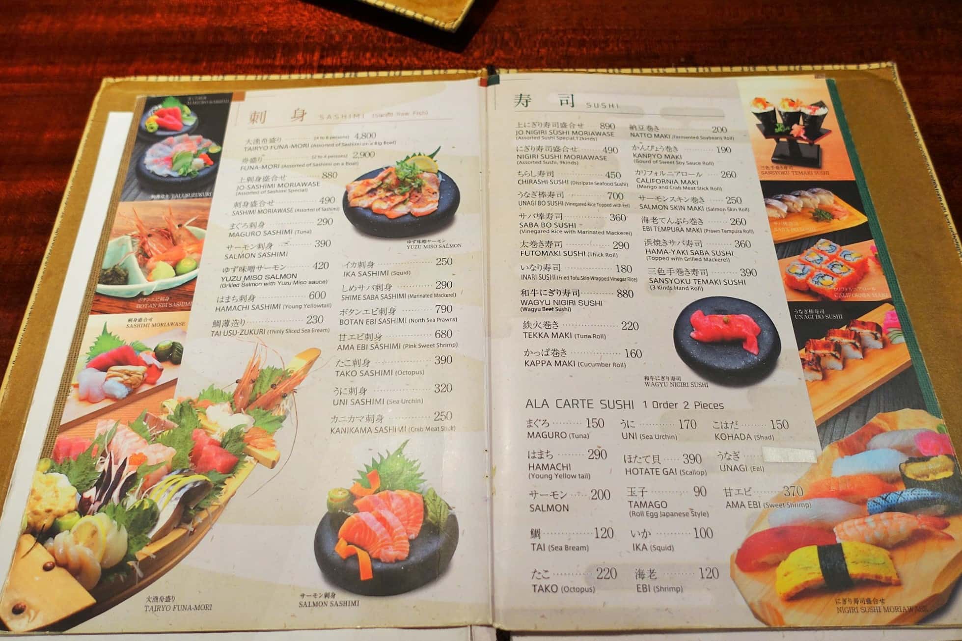 アラカルトメニューも併せて注文するなら、9巻のにぎり寿司盛り合わせ(490ペソ)でも十分お腹いっぱいになると思います!