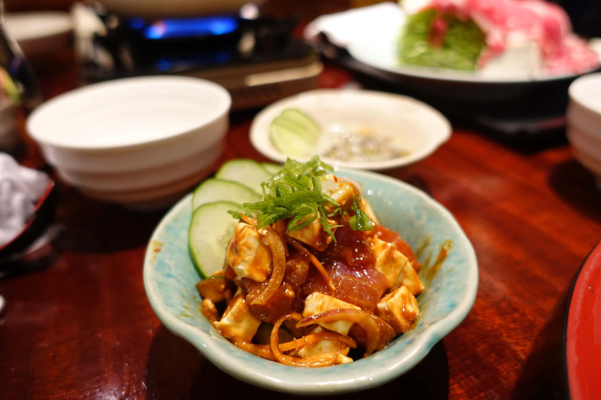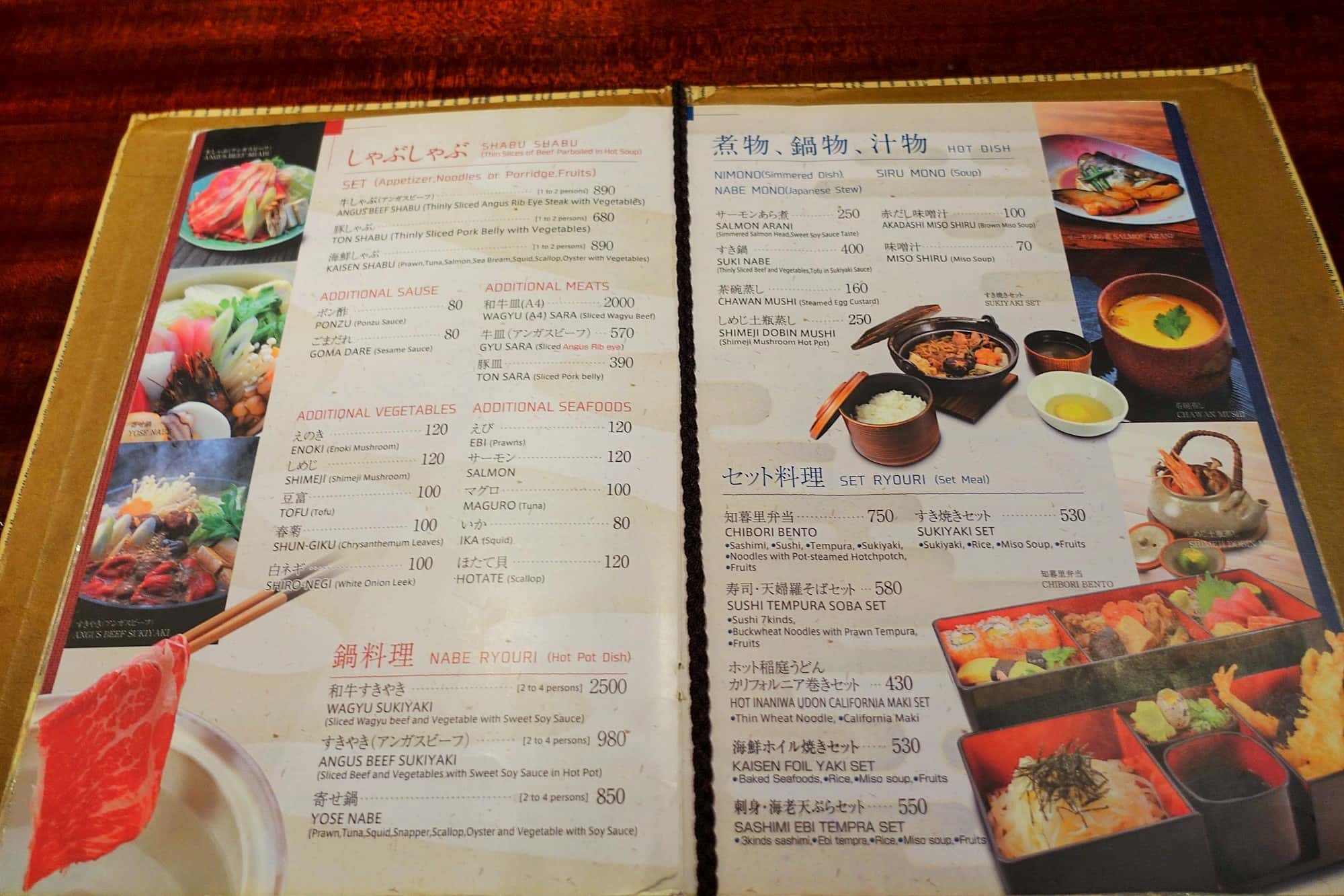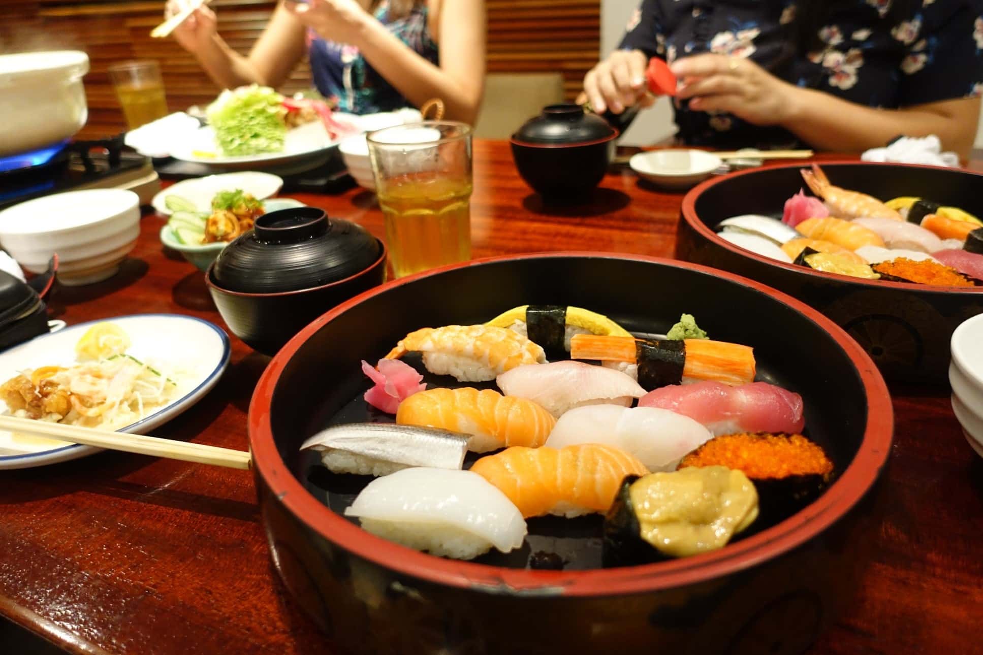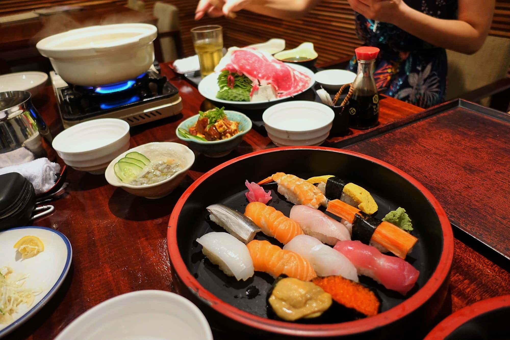 店内の内装がそれぞれ違い、左側では鍋料理、右側は寿司を始め、その他の料理を頂けます。