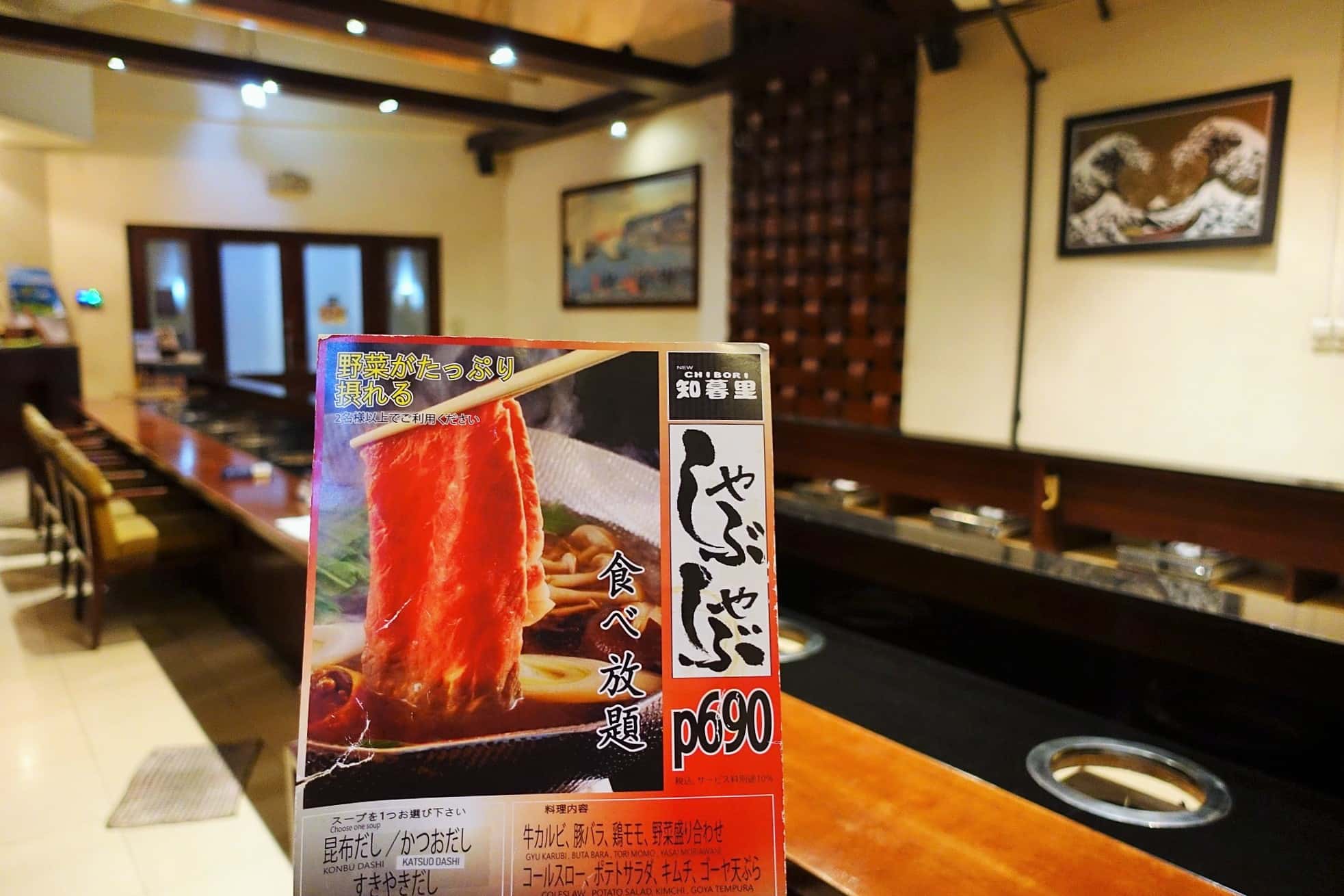 カウンターにあったチラシ、しゃぶしゃぶの食べ放題のキャンペーン情報です、が、「Eatigo」では他のキャンペーンとの併用はできないのでご注意を!
