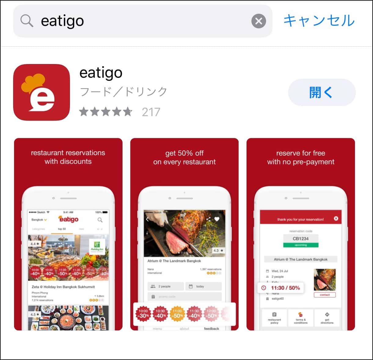 1.最大50%オフになるレストラン予約アプリ「eatigo」