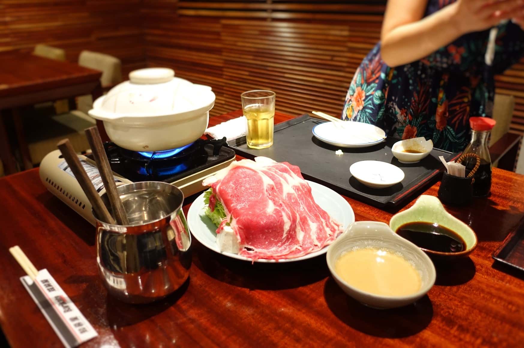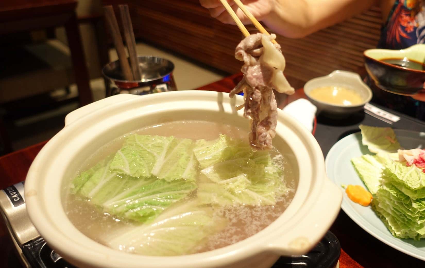 しゃぶしゃぶの鍋のスープは、昆布等の味がついてない変わりにポン酢とゴマダレのタレが結構濃いめです。