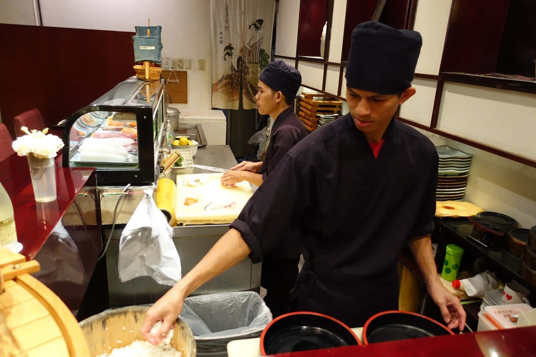 オーダーを受けて板前さんたちがお寿司を握ってくれます。