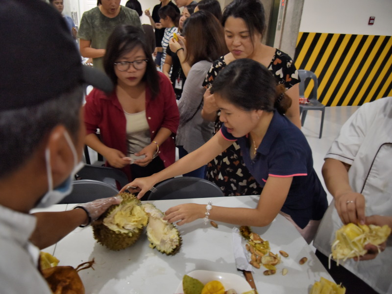 ドリアンの説明については、”匂いは地獄だけど味は天国”と英語で説明してくれて、みんなの笑いを取ってました。