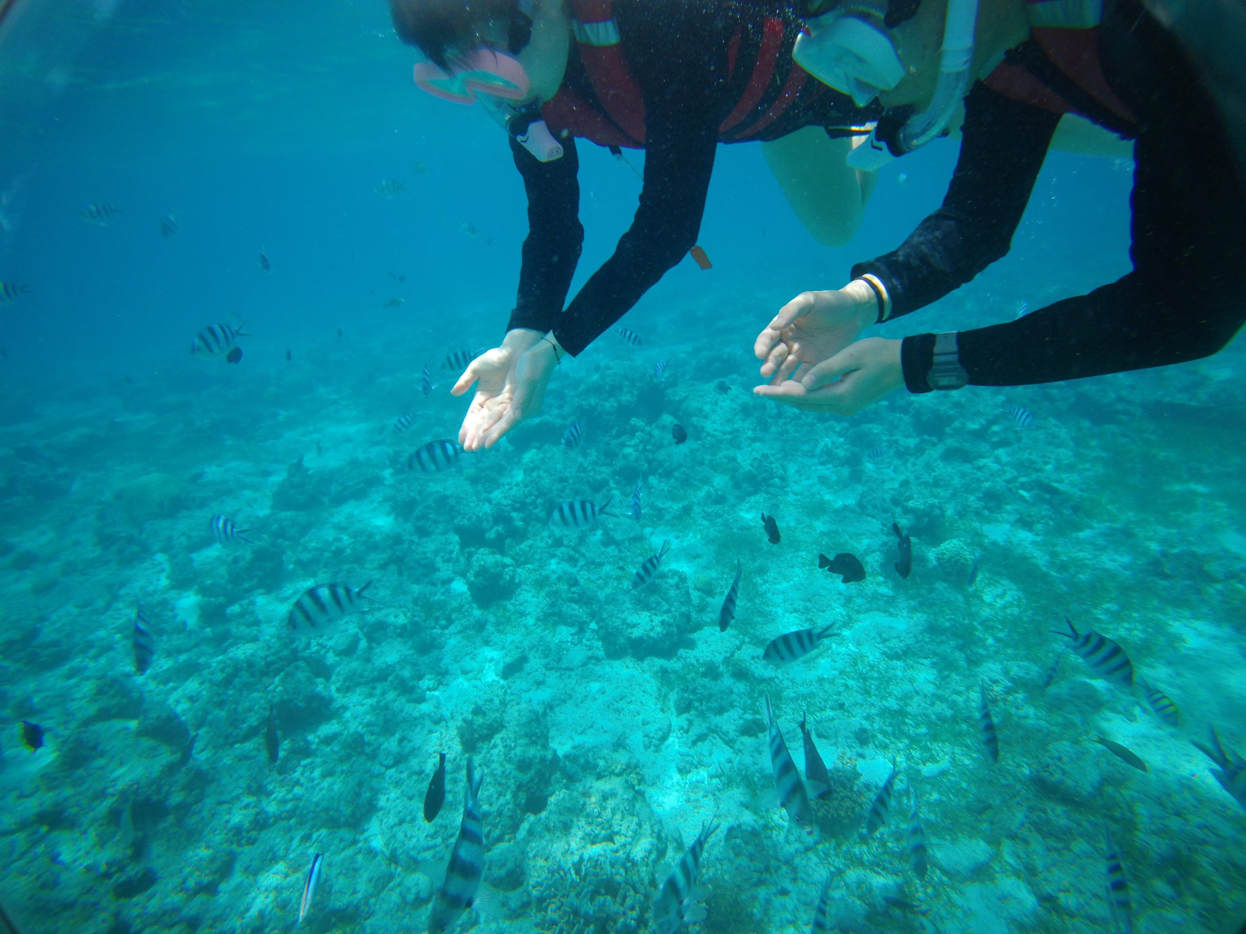 いよいよ海の中に潜ってみると、そこには透き通った美しい世界が広がっていました。カラフルな熱帯魚やサンゴ礁が目の前に現れ、なんと「ニモ」でおなじみのクマノミにも出会えました。その光景はまるで別世界に迷い込んだかのような感動的な体験でした。