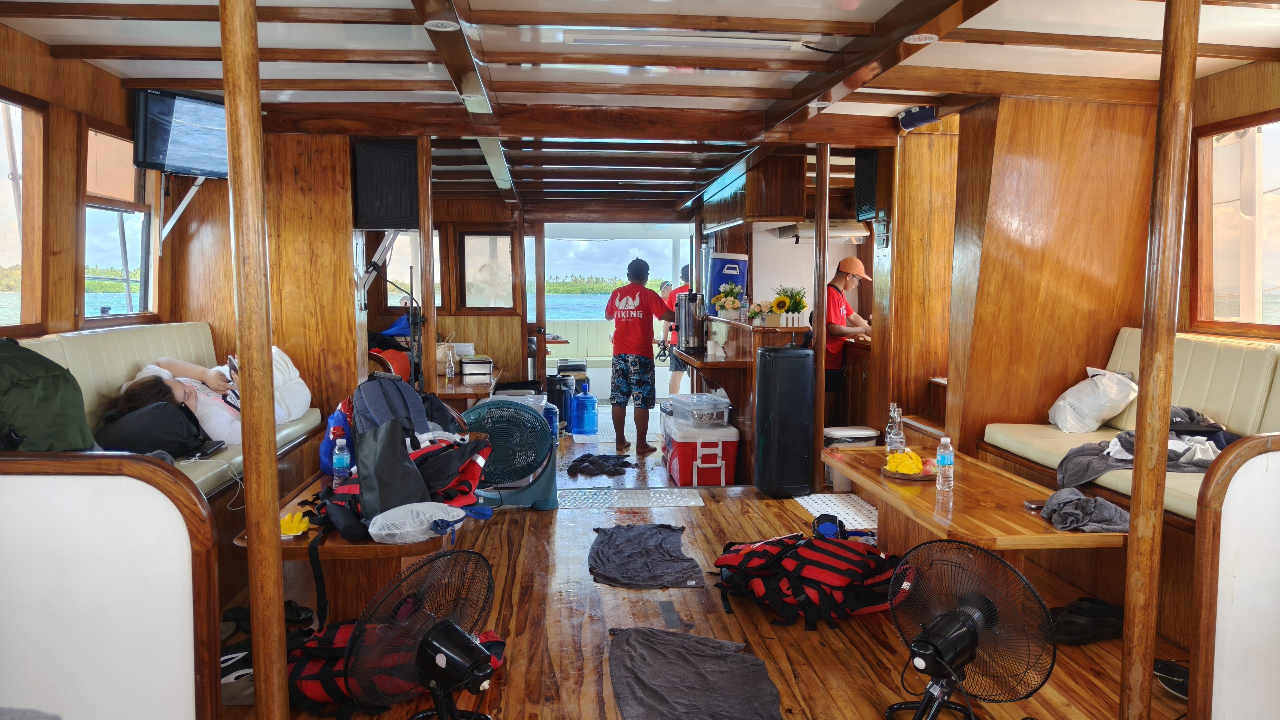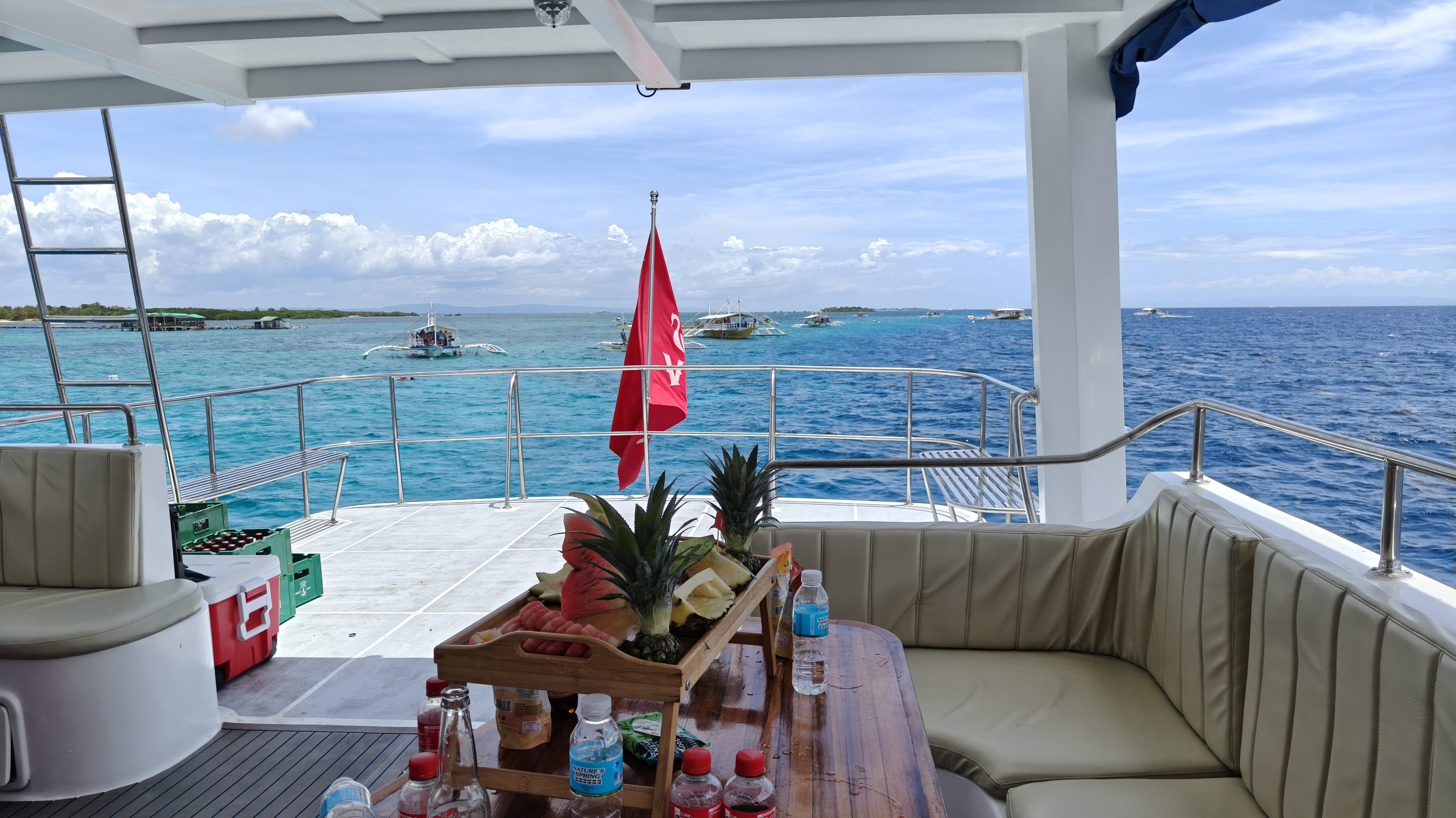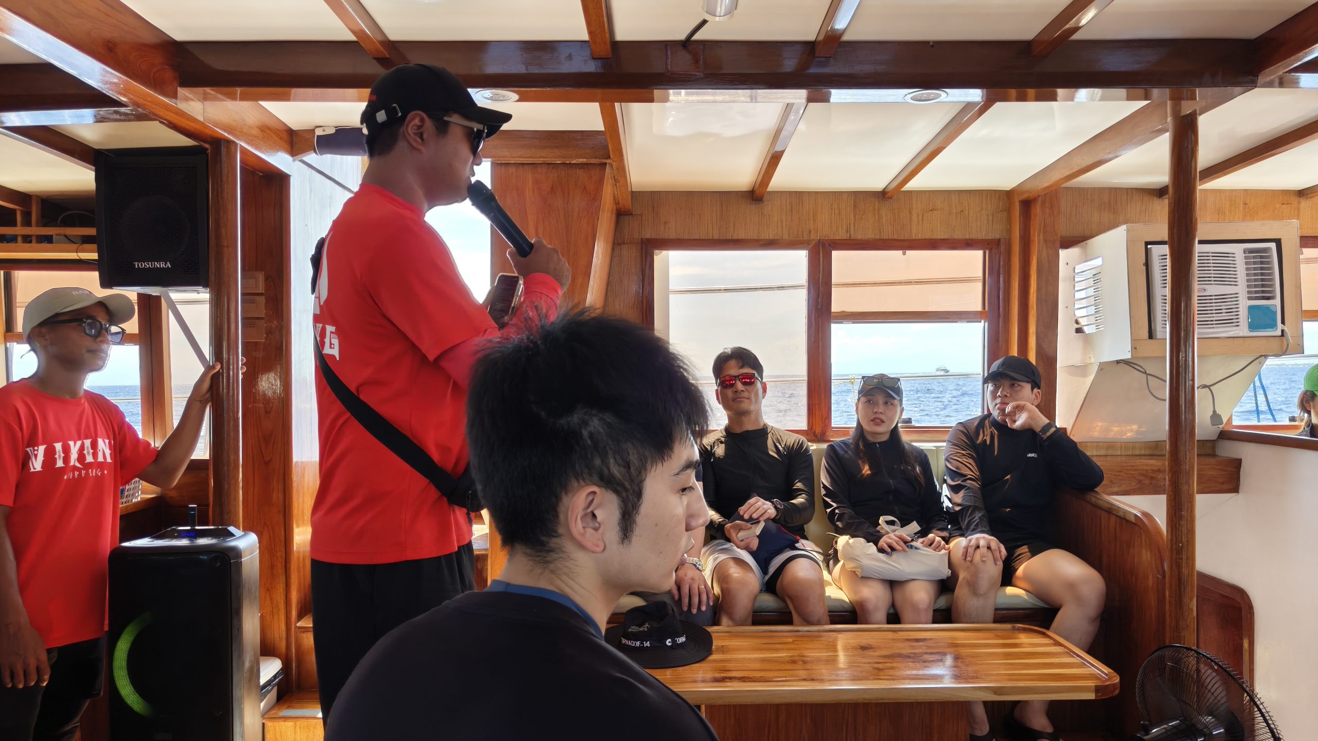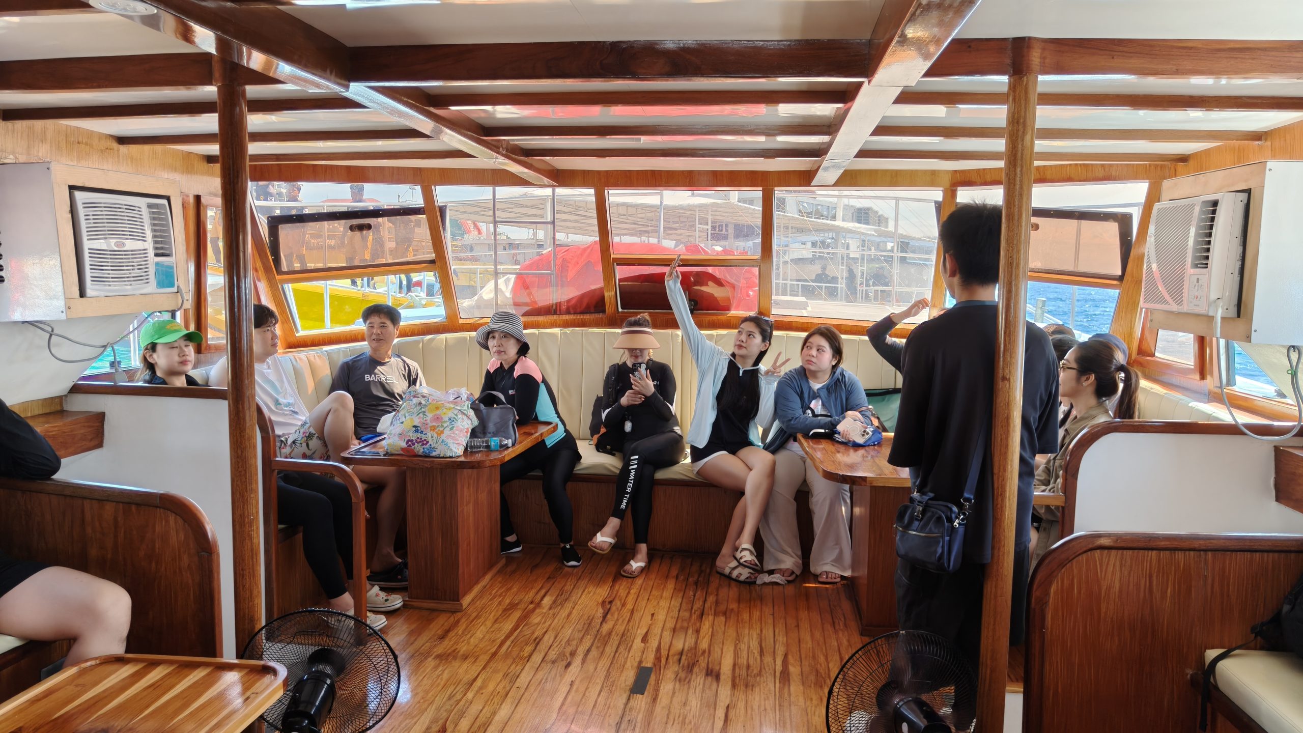 フィリピンの大型連休ということもあり、当日は合計24名がツアーに参加していました。今回は韓国人主催のツアーに参加したため、参加者の約9割が韓国の方々で、クルーズ中は終始、韓国語が飛び交う賑やかな雰囲気でした。そのため、まるで韓国を訪れているかのような気分を味わうことができました。幸い、私を含め他国からの参加者も数名おり、各アクティビティに関するアナウンスは英語と韓国語の両方で行われました。また、船内は非常に清潔に保たれており、快適に過ごすことができました。