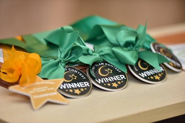 生徒と先生の混合チームをA~Cの全部で3チーム作り、「Song Solo Contest(ソロ)」「Duet Singing Contest(デュエット)」「Poetry Stam Contest(ポエム)」「Group Dance Contest(ダンス)」の4つの部門でそれぞれのチームの代表者がパフォーマンスを披露し、競い合っていただきました。