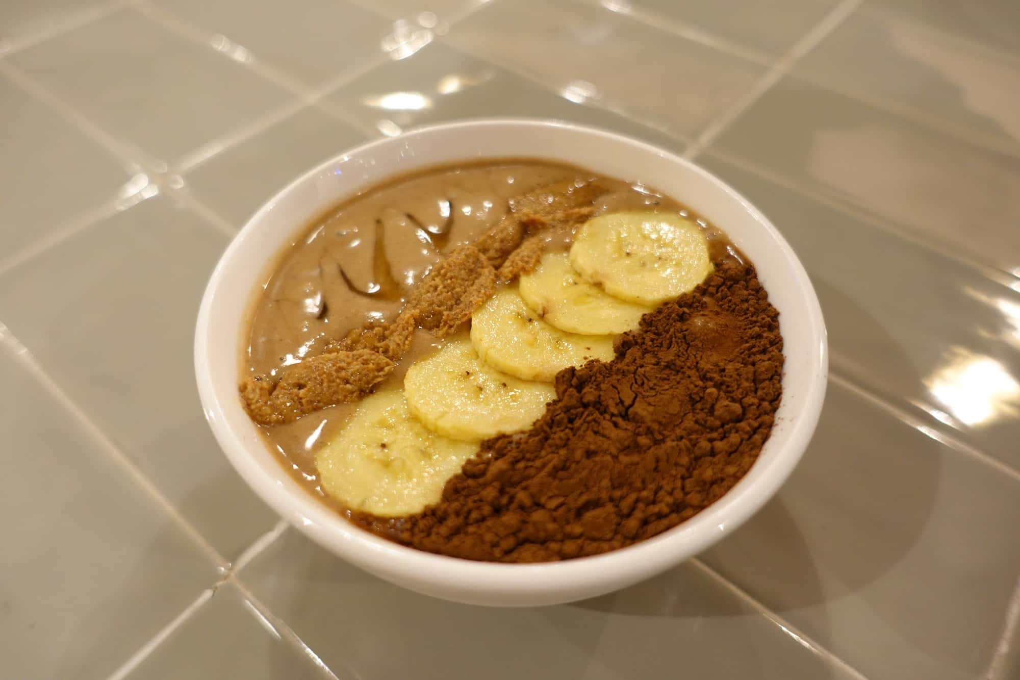 カカオ、アーモンドミルク、バナナ、ピーナッツバター、グラノーラ