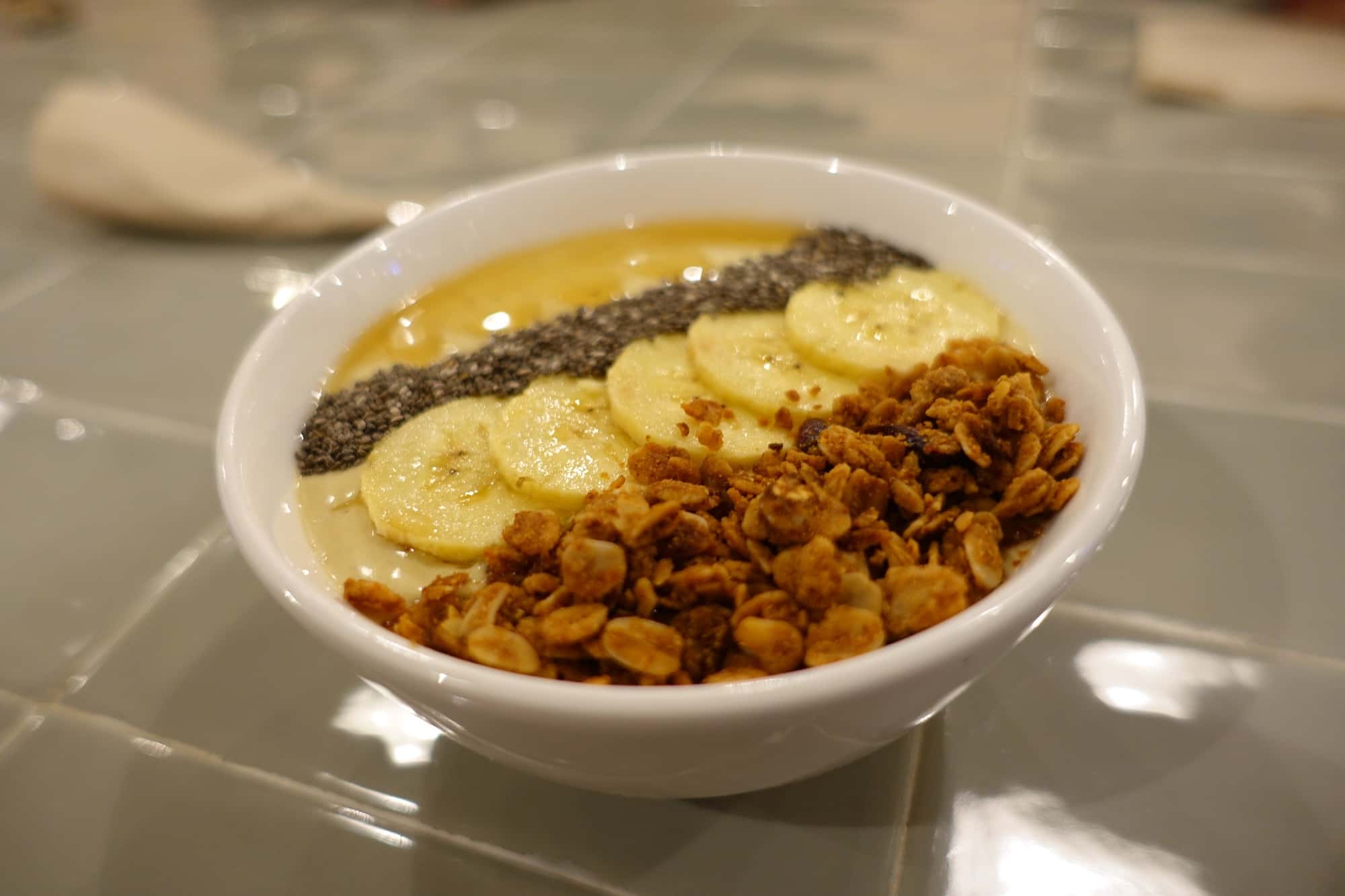 アサイ、ココナッツミルク、マンゴー、バナナ、チャイシード、グラノーラ