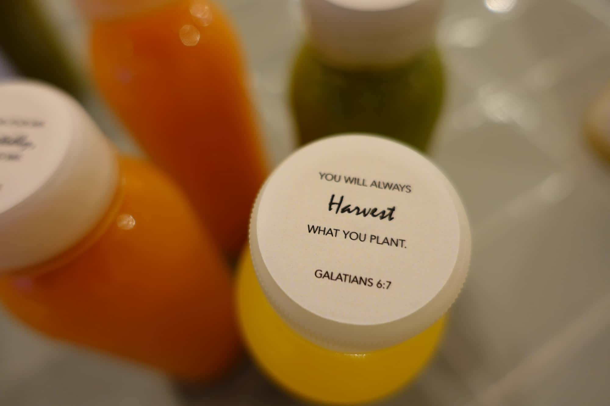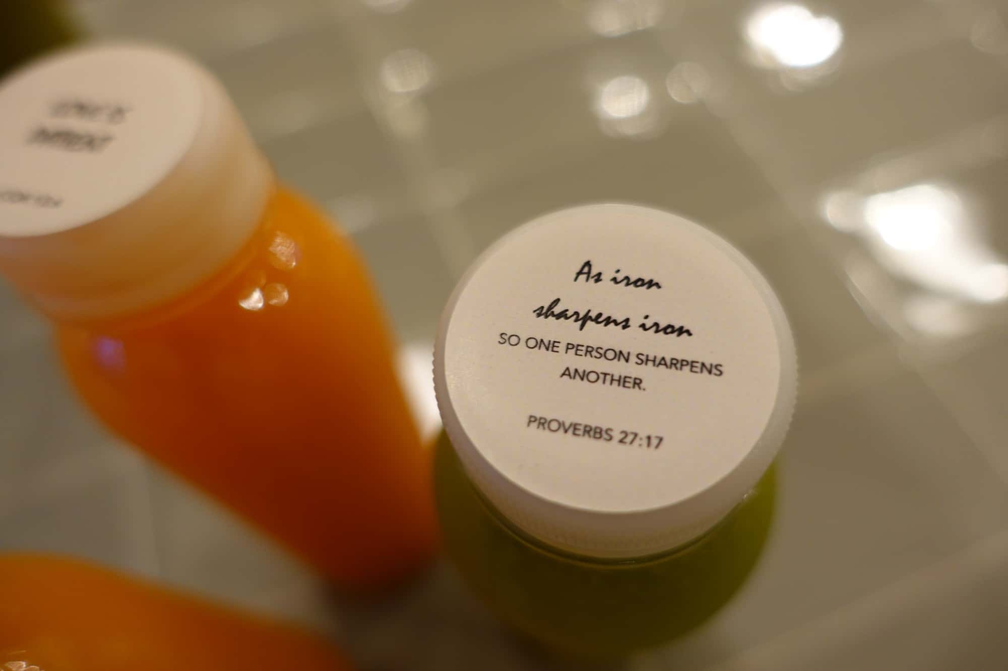 ボトルのふたにはバイブルの言葉が書いてあるので、英語勉強にもどうぞ(笑)