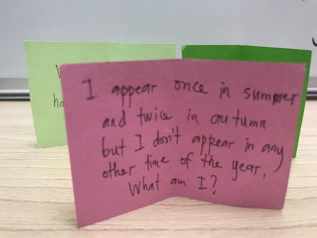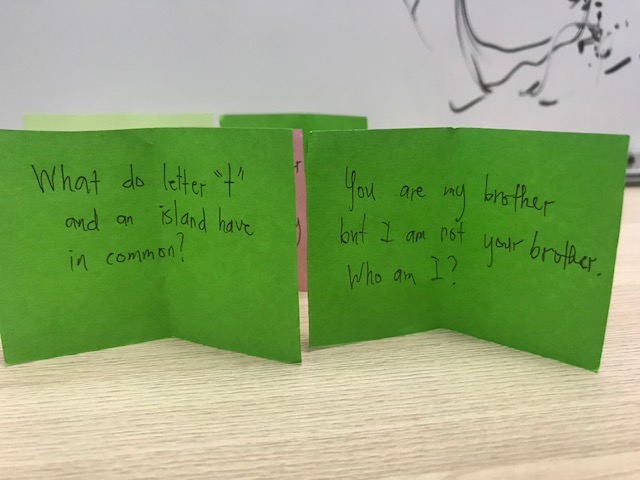 そう、日本で言うところの『なぞなぞ』です。ほとんどルールは一緒なのですが、英語の質問に英語で答えるというのは思いのほか難しいです。