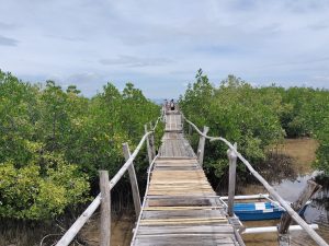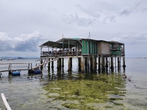 1か所目のポイントは、マングローブを抜けて100m以上ある海に浮かぶ橋を歩いたところにあるコテージです。