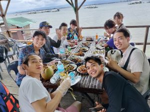 海で泳いだり、地元の人がおすそ分けしてくれた貝を食べたり、リラックスした時間を過ごすことができました。