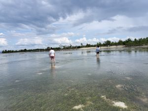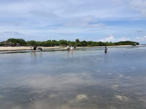 こちらは普段はビーチのようですが、私たちが行った時間帯は引き潮だったので、歩いて向こう岸まで渡ることができました。海中には魚やヒトデが沢山いたり、流れる大きな雲を眺めたり、仲間を埋めたり(笑)