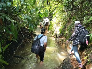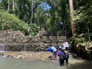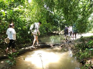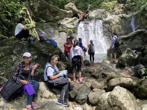来たことを後悔する先生もいたり(笑)、なぜかサンダルで参加してしまった生徒さんが叫びながら進んだり(結局彼のサンダルはボロボロに壊れて、先生に靴を借りました。)、なんとか滝に到着しました!