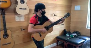 工場のスタッフの方がギターの作り方について説明してくれます。またいろんなギターを使って即興で沢山の曲を演奏をしてくれました。ギターによって音色が異なりとても感動しました!