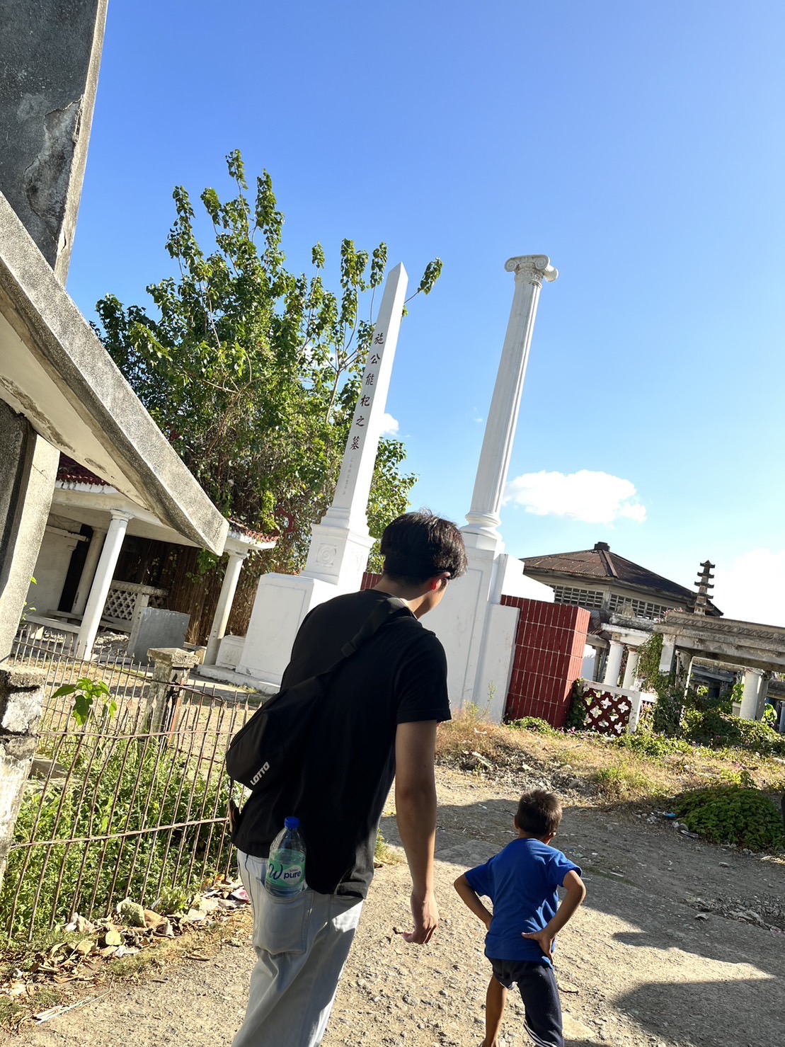 歩いていると無数の墓地の数。よーく見てみると、中国語の文字。そう、ほとんどが中国人の墓地なのです。お金がある人はお寺のような建物の中に墓地を作っています。中には壊されている墓地があり、現地の方に尋ねてみると、親族が骨を持ち帰ったとのことでした、、(笑)