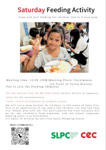ボランティア活動の運営母体はSPLC(Sustainable Livelihood Projects Cebu)という、世界的に貧困層へのサポートを行っているNGO団体です。主な活動内容は、セブ市内の墓地スラム街で暮らす子どもたちとの交流と食事の提供です。