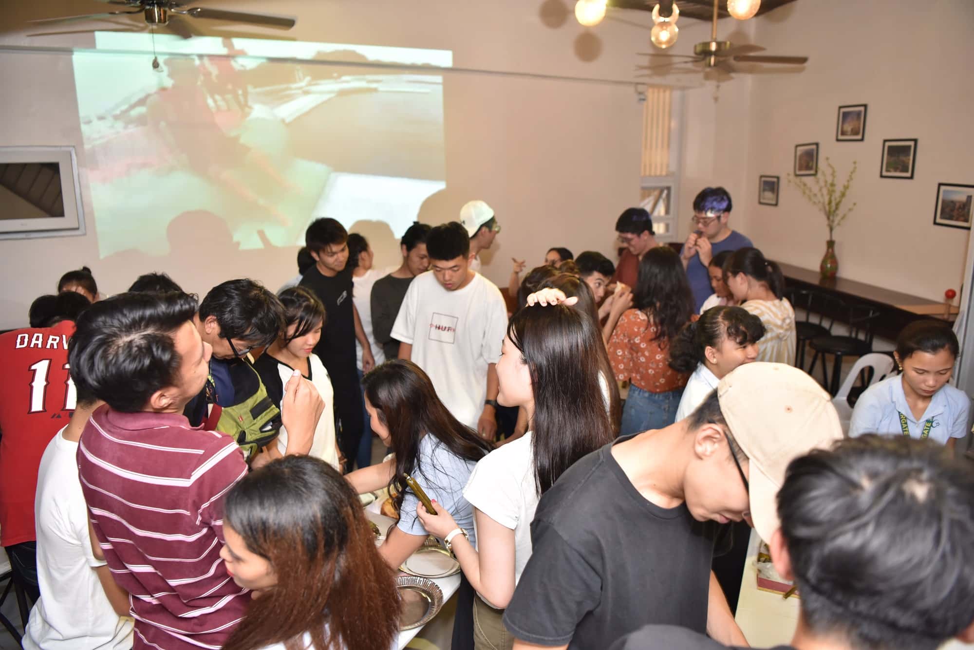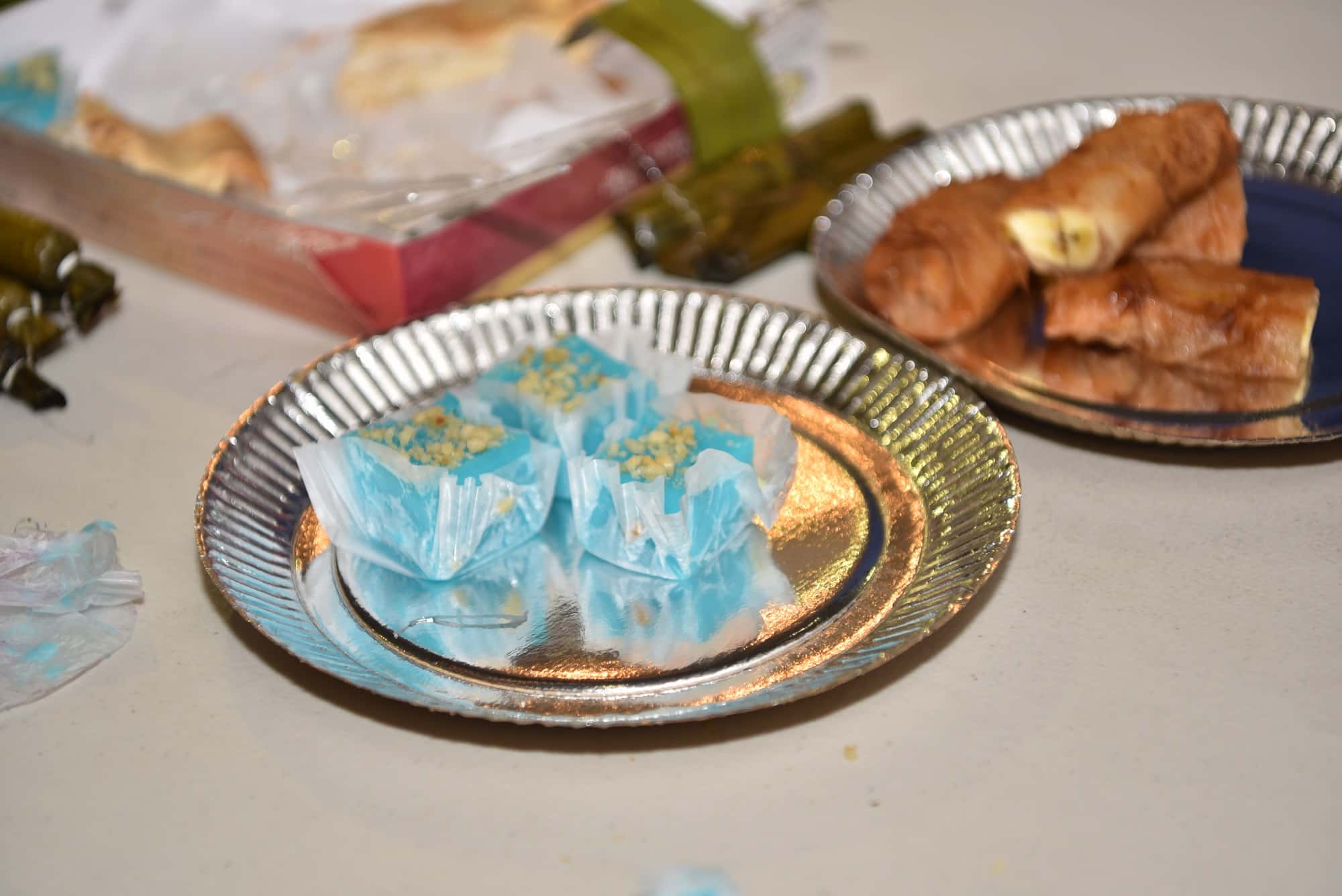 金曜日の卒業式後の打ち上げの雰囲気の中、テーブルに並んだフィリピンスイーツ。