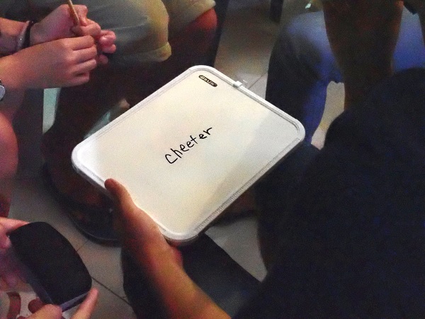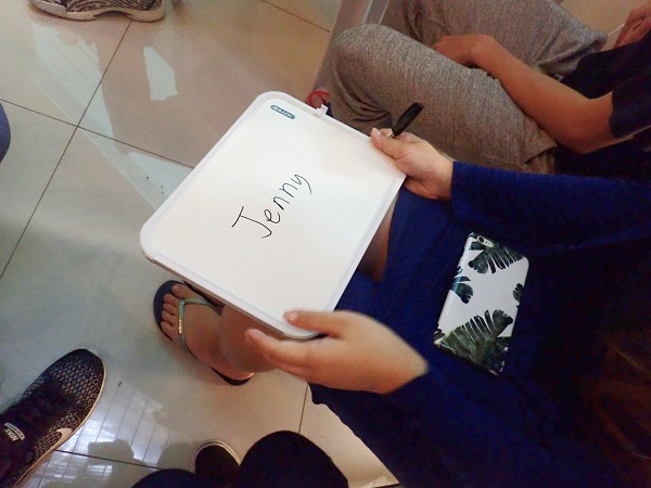 ○配布しているホワイトボードに答えを書き込んでもらいます。