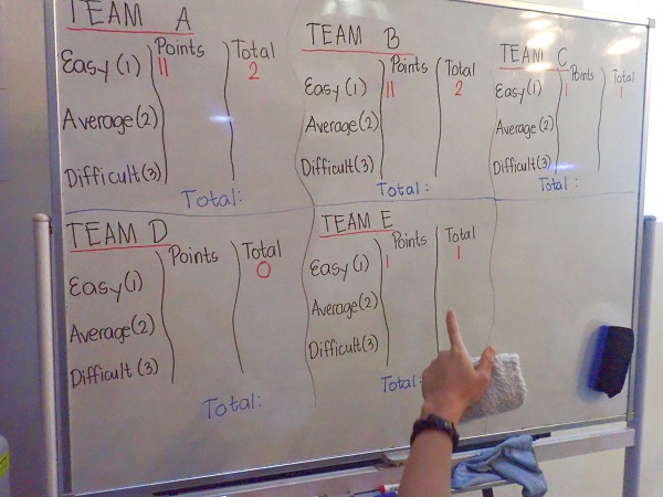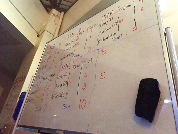 ○各チームに一人ずつフィリピン人講師が付き、先生方が生徒の解答を見て「正解」または「不正解」の判断を行ないます。
