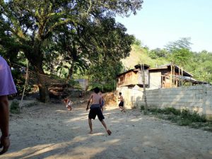 舗装されていない砂利道を転ばないようにゆっくりみんなで進んでいく先には、この地区で生活する人の家や、人々の生活を見学できました。