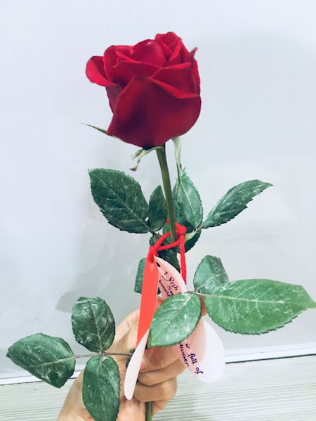 『朝9時から夕方5時まで先着60本のバラをラウンジにて販売致します。誰かにバラを送りたい方は、ラウンジまでお買い求めください。本数が限られていますので、早い時間帯のお買い求めをおすすめ致します。もしも、直接渡すのが恥ずかしい方の為に匿名でのデリバリーサービスがあります(笑)