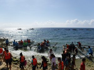 今回はStargate専用の貸し切りジプニーなので安心して乗れます。初めてのJeepney体験にもご満悦の御一行、港から船に乗り換えます。