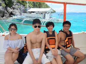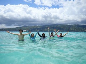 着替えを済ませすぐにジンベエザメウォッチングに向かいます。車の中では爆睡でしたが、もうすぐ会えるジンベエザメにみんなワクワクがとまりません。