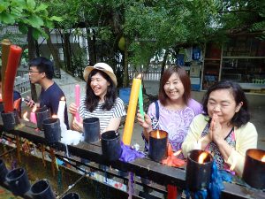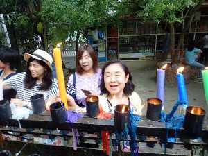 お城のような外観に写真撮影が止まらない御一行。落ち着いたところで、お願いごとのキャンドルに移動します。