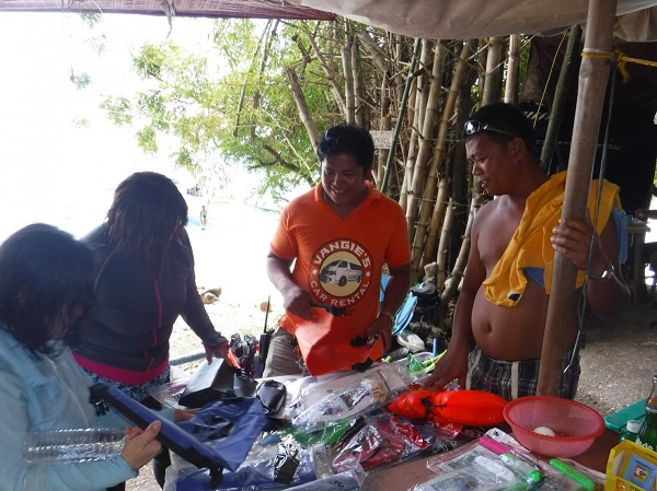 オスロブの港でドライバッグが300ペソで販売されていました。マダムたちはすかさずゲット!