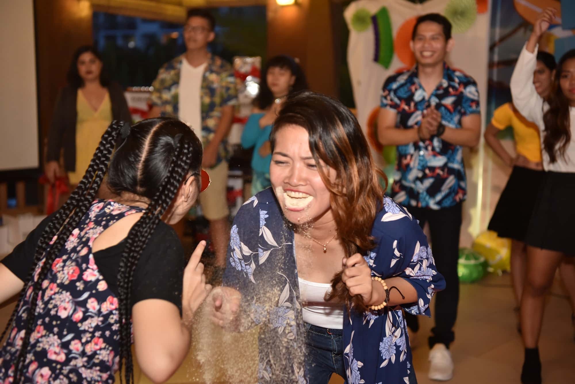 白い粉を吹き出す参加者続出で、笑いをさそいました。