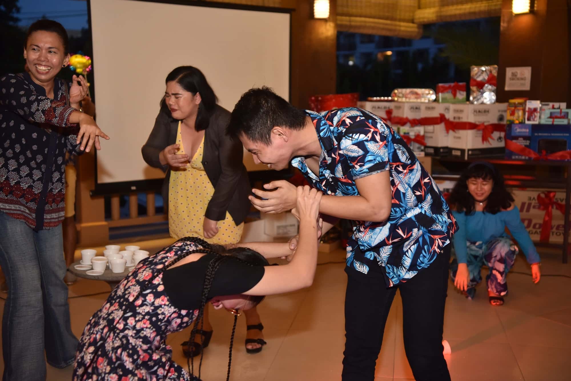 開会の挨拶に今年1年を振り返るビデオ上映でしみじみと思い出に浸るのもつかの間、ラテンのノリで先生たちがパーティーを盛り上げていきます。