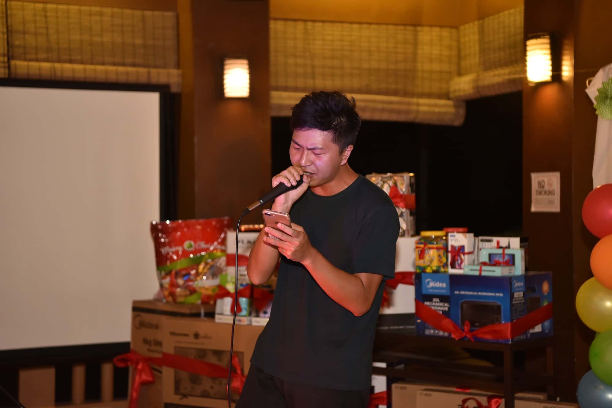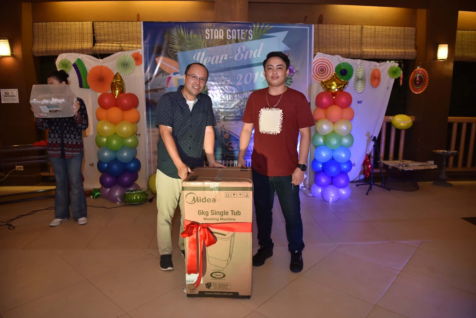 フィリピン人スタッフ対象、豪華景品がずら~と並び、番号が発表されるたびに会場が湧きあがりました。