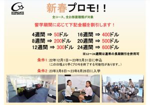2023新春留学応援キャンペーン!全部屋最大$600割引